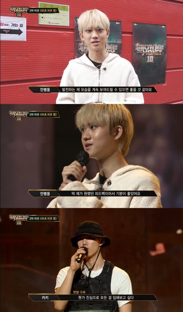 먼저 안병웅은 지난해 \'쇼미더머니 9\' 때의 가사 실수를 만회하듯 \'ALL PASS\'로 2차 미션을 통과했다. 이날 60초를 넘어 무반주로 이어간 래핑에 대해 안병웅은 "가사적인 부분에 있어서 꾸미지 않고 저를 더 보여주고 싶은 마음이 커져서 노력했다. 저를 보여주기엔 1분도 너무 적었다"라고 소개했다.