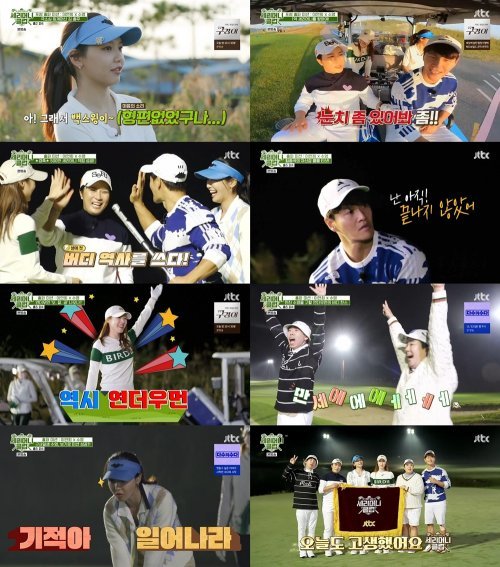 이들은 지난주 전반전 경기에서 완벽한 콜라보로 500만 세리머니를 적립하며 총 7,200만 세리머니 획득에 성공했다. 이어 후반 홀에서는 양세찬 대신 김종국이 투입, 팀을 2인으로 나눠 최상의 시너지를 끌어올렸다. 박세리와 수영은 레전드 걸스 팀으로, 김종국과 이연희는 미녀와 GYM승 팀이 된 가운데 서로의 합을 모르는 상태에서 긴장감 넘치게 세리머리 획득에 도전장을 내밀었다.
