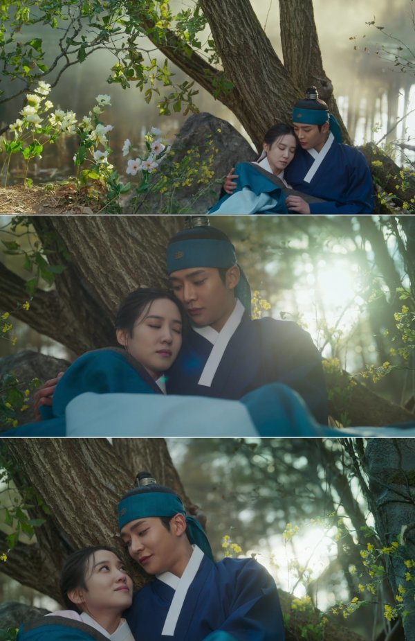 오늘(22일) 본방송에 앞서 공개된 예고 영상엔 그 실마리를 찾아볼 수 있는 행복한 한 때가 담겼다. 상처를 입은 휘가 지운에 품에 안겨 잠들었고, 그런 휘를 바라보는 지운의 눈빛이 따뜻하다. “나와 함께 있으면, 평생 도망자 신세로 살아야 할 것”이란 휘에게 “저하만 계신다면 아무 상관 없다”는 지운의 사랑의 약조도 이어졌다. 나무와 꽃이 우거진 숲을 따사로이 비춘 햇살이 휘운 커플의 아름답고도 애틋한 연모의 마음을 극대화시킨다.