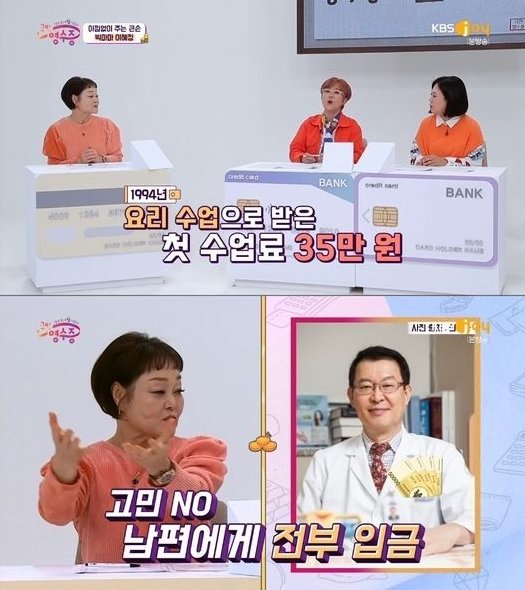 이날 이혜정은 “요리 선생하고 받은 첫 수업료가 35만 원이었다. 너무 소중해서 남편에게 다 줬다. 남편이 청소도 도와주고 해서 월급을 다 가져다 줬다”고 전했다.