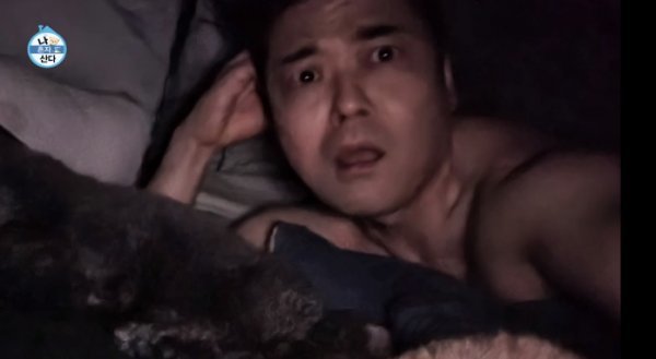 이날 전현무는 “내 침실에는 안 들어올 줄 알았는데, 그런데 밤에 내 양쪽 겨드랑이 파고들더라. 굉장히 불편한 잠자리였다. 10분 정도 잔 것 같다”고 상의 탈의 사진을 공개했다. 그 모습에 기안84는 “왜 또 형은 옷을?”이라며 화들짝 놀랐다.