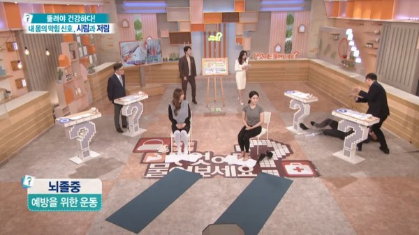 그 중 패널로 출연한 한 정형외과 교수는 뇌졸중 예방을 위한 운동 시연을 지켜보던 중 갑자기 중심을 잃고 쓰러졌다. 이 모습이 카메라에 담겼고 곁에 있던 또 다른 의사 패널은 급하게, 쓰러진 교수의 상태를 확인했다.