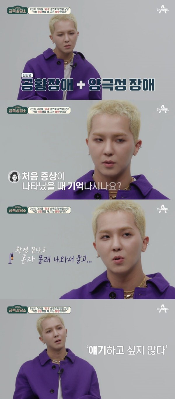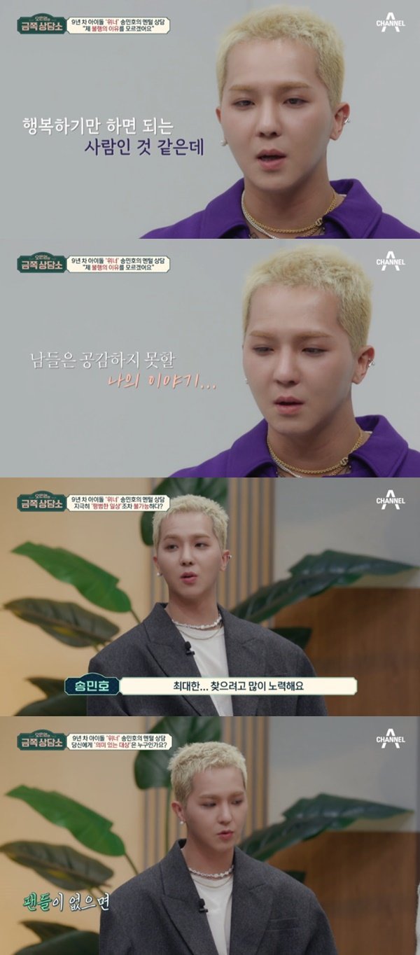 그룹 위너 송민호가 그동안 멤버들에게도 털어놓지 못했던 속마음을 공개했다. 공황장애, 양극성 장애 진단 등을 고백하며 눈물을 보이기도 했다.
