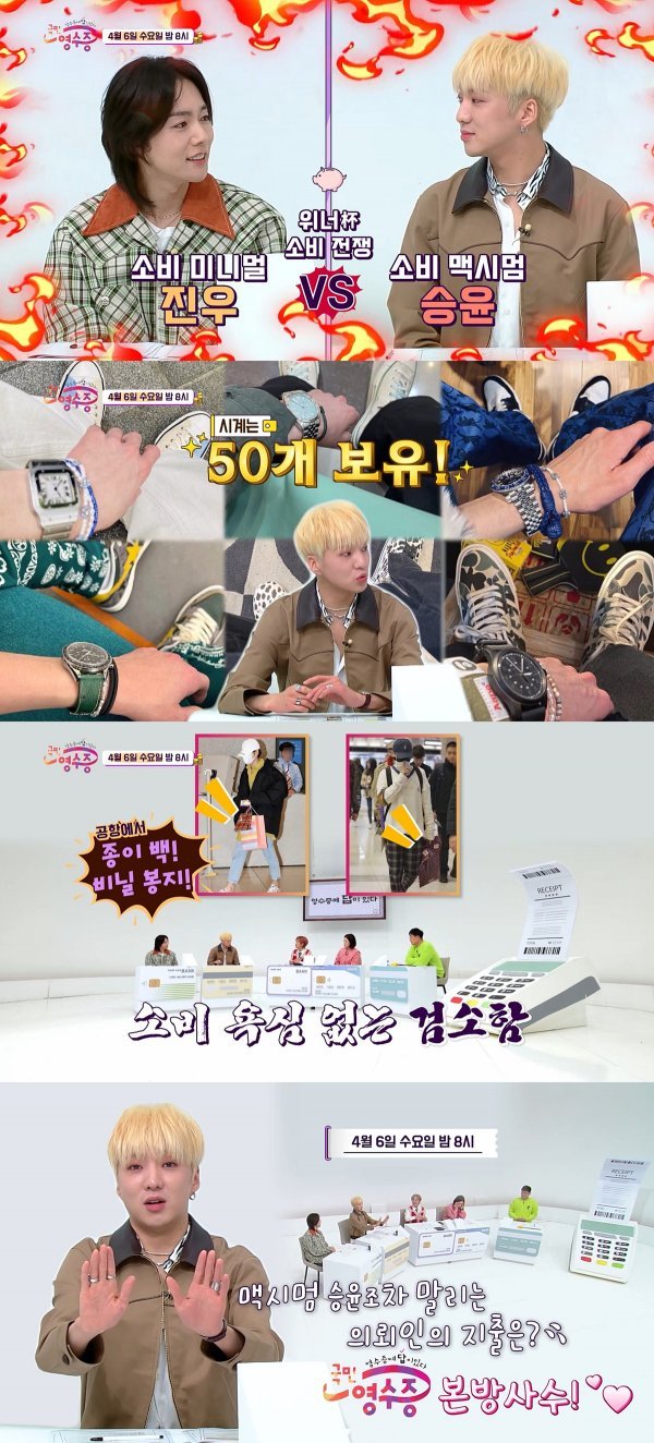 이날 강승윤은 "위너의 극과 극 소비 대표가 나왔다. 저는 맥시멀리스트, 진우 형은 미니멀리스트다"라고 운을 떼 흥미를 높인다.