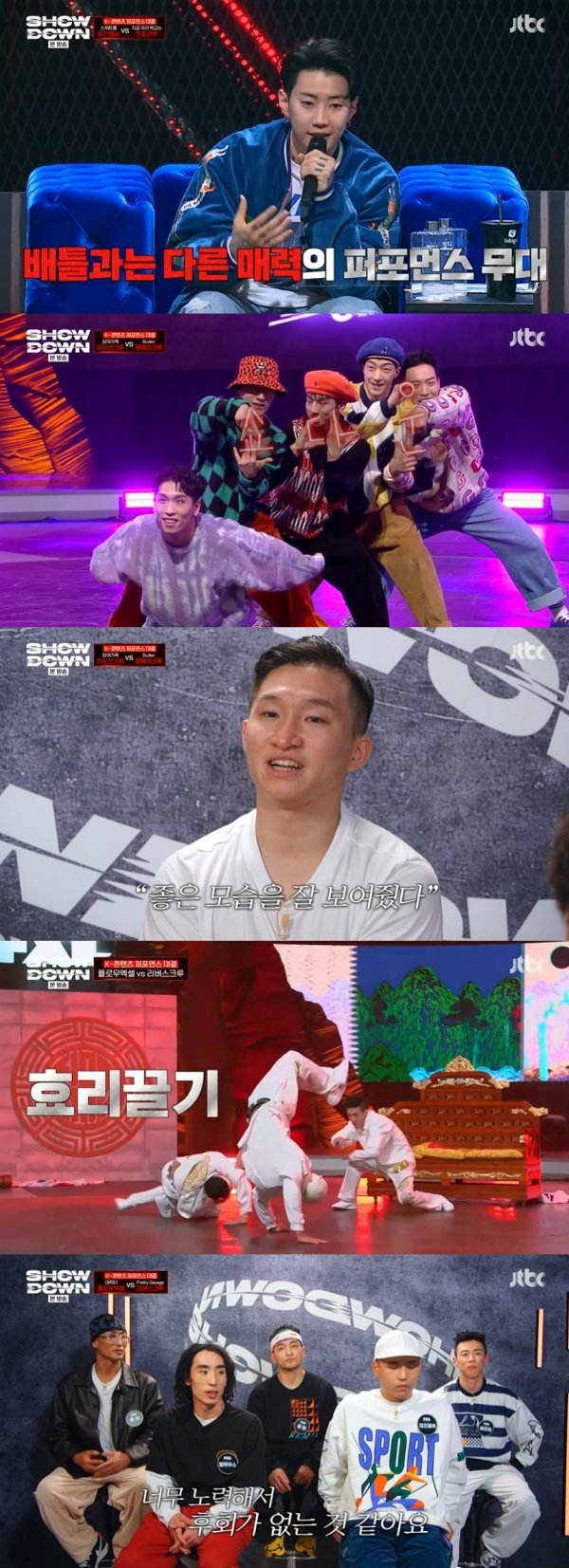 8일 방송된 JTBC 댄스 서바이벌 프로그램 ‘쇼다운’(연출 이창우)에서는 대한민국을 세계에 알린 K-POP, K-드라마, K-무비를 오마주한 2라운드 K-콘텐츠 퍼포먼스 대결이 펼쳐졌다. 이번 라운드에서 최초의 탈락 크루가 발생하는 만큼 한층 치열한 분위기가 감지된 가운데 리버스크루, 퓨전엠씨, 원웨이크루가 상대 크루를 꺾고 3라운드 진출을 확정지었다.