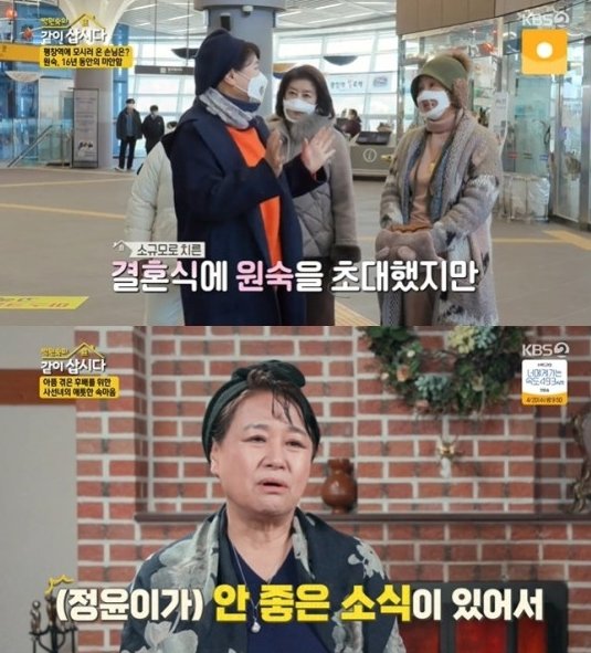 ‘같이 삽시다’ 박원숙, 혜은이, 김영란이 이혼 절차를 밟고 있는 배우 최정윤을 보고 안타까워했다.