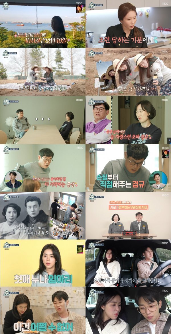 화제의 이경규·이순애 남매의 어색한 만남도 공개됐다. 조카들이 자리를 비우자 여동생 이순애와 둘만 남은 이경규는 당황한 듯 주변을 살폈다. 숨 막힐 듯 어색한 공기가 흘렀고 이경규는 이를 두고 “토스트끼리 붙어있는 퍽퍽한 느낌”이라고 적나라하게 묘사했다. 적막을 깬 건 여동생 순애였다. 오미자를 좋아하던 오빠의 입맛을 기억한 순애의 배려에 말 문이 트였다. 딸을 시집보낸 부모로서의 공감대도 있었다. 이경규는 “딸(예림) 시집 보내고 나니 실감이 안 난다. 내가 좋아하는 개를 데리고 가서 그런 것 같다”고 너스레를 떨었다.