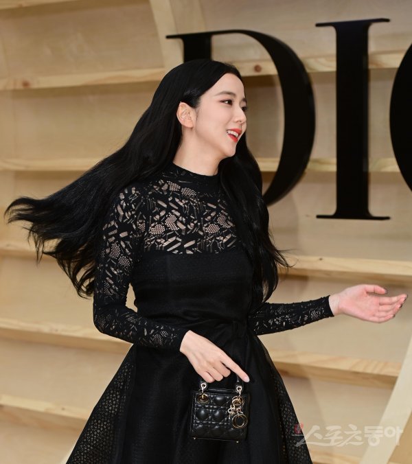 그룹 블랙핑크 지수가 30일 서울 서대문구 대현동 이화여자대학교에서 열린 한 프랑스 럭셔리 브랜드의 2022 가을 여성 컬렉션 패션쇼 포토월에 입장하고 있다.