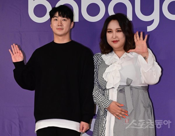 찬민과 풍자가 3일 서울 중구 소공동 롯데호텔 서울에서 열린 IHQ의 OTT ‘바바요(babayo)‘ 공식 론칭 기자간담회에서 포즈를 취하고 있다.