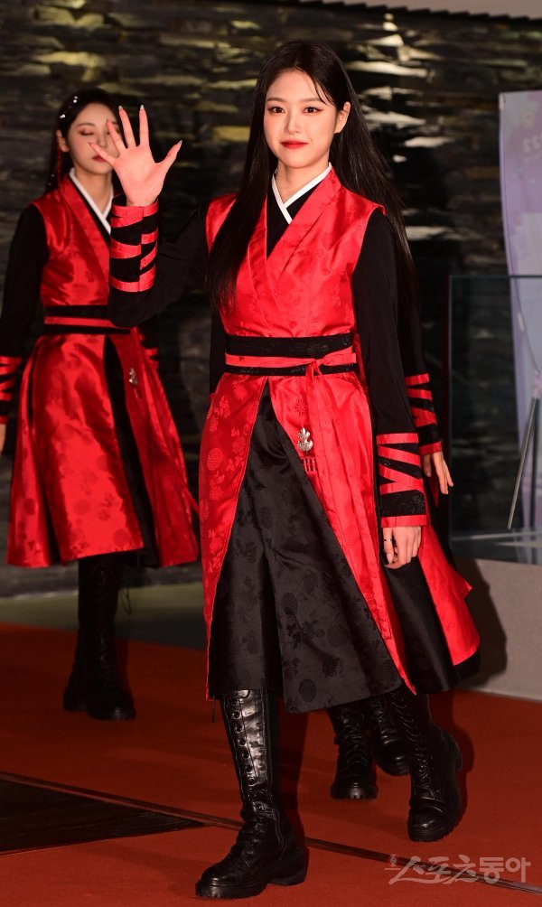그룹 이달의 소녀 현진이 7일 서울 마포구 상암동 CJ ENM 센터에서 열린 ‘KCON 2022 프리미어 인 서울’ 포토월에 입장하고 있다.