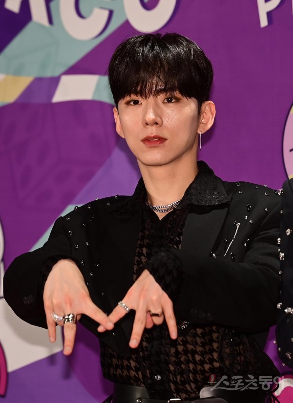그룹 몬스타엑스 기현이 7일 서울 마포구 상암동 CJ ENM 센터에서 열린 ‘KCON 2022 프리미어 인 서울’ 포토월에서 포즈를 취하고 있다.