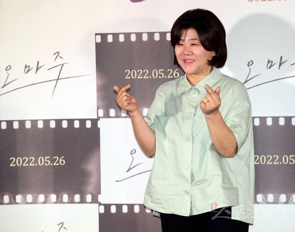 12일 서울 용산구 CGV용산아이파크몰에서 열린 영화 ‘오마주’ 언론 시사회에 참석한 이정은이 포즈를 취하고 있다. ‘오마주’는 한국 1세대 여성 영화 감독의 작품 필름을 복원하게 된 중년 여성 감독 지완의 현재와 과거를 넘나드는 시간 여행을 통해 일상, 환상을 오가는 여정을 담았다.