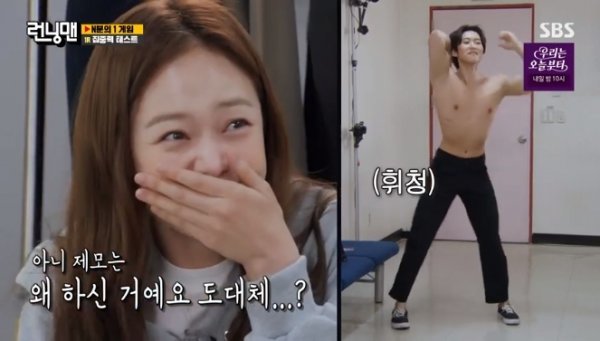 15일 방송된 SBS ‘런닝맨’에서는 일명 ‘제로투 댄스’를 선보이는 경호원 춤사위에 시선을 빼앗긴 전소민 모습이 그려졌다.