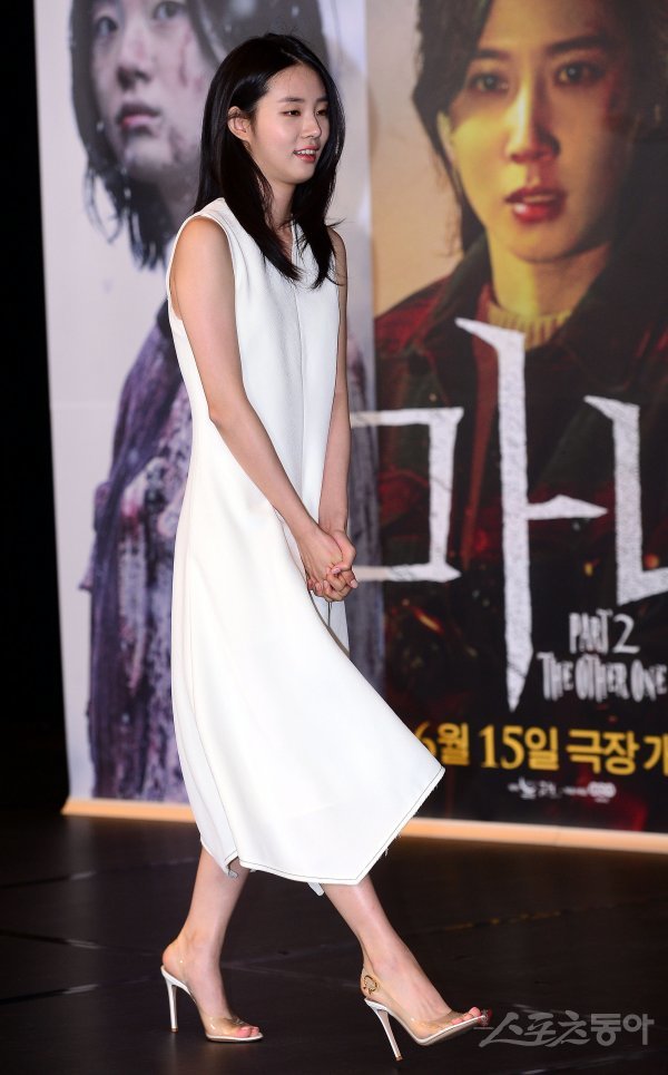 24일 서울 JW 메리어트 동대문 스퀘어 그랜드 볼룸에서 진행된 영화 ‘마녀2’ 제작보고회에 참석한 배우 신시아가 포즈를 취하고 있다.영화 ‘마녀2’는 초토화된 비밀연구소에서 홀로 살아남아 세상 밖으로 나오게 된 소녀 앞에 각기 다른 목적으로 그를 쫓는 세력들이 모여들면서 벌어지는 일을 그린 액션 영화로 6월 15일 개봉한다.