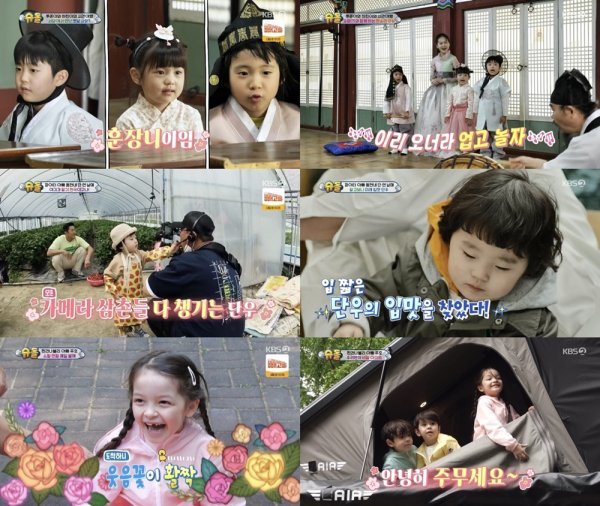 또 국악 트롯 요정 김다현에게 ‘사랑가’를 배우게 된 투준형제와 하린이. 하린이는 투준 형제 중 민준이가 더 좋다고 밝혔고, 춘향이와 몽룡이 대신 자신의 이름과 민준이의 이름을 넣어 ‘사랑가’의 한 소절을 완성했다.