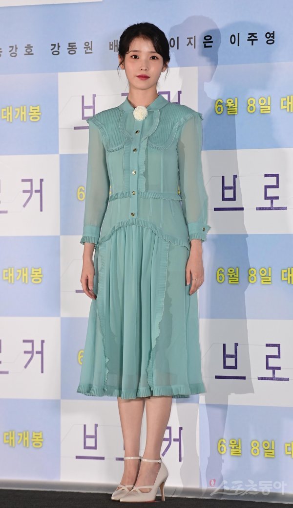 배우 이지은이 31일 서울 용산구 CGV용산아이파크몰점에서 열린 영화 ‘브로커’ 언론시사회에서 포즈를 취하고 있다.