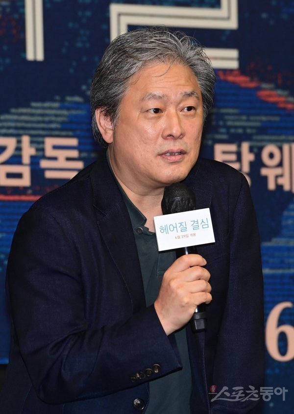 박찬욱 감독이 2일 서울 종로구 JW메리어트동대문스퀘어서울에서 열린 영화 ‘헤어질 결심’ 제작보고회에서 인사말을 하고 있다.