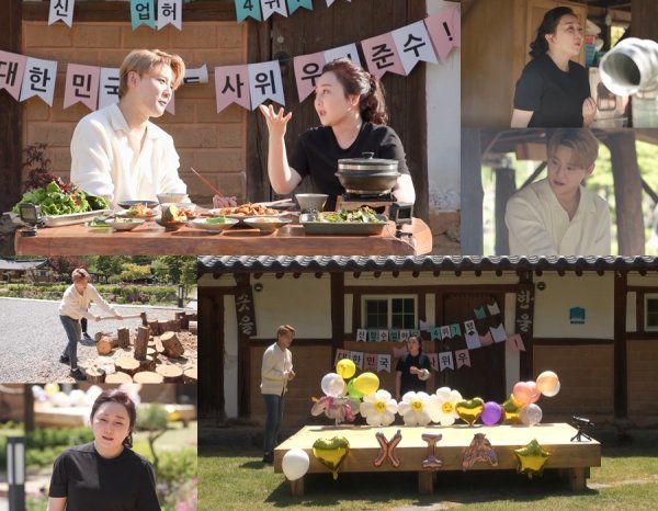 이어 “팬을 한 지가 20년이 되어 간다”며 ‘준수홀릭’을 인증한 뒤 손수 꾸민 팬미팅 장소로 안내한다. 김준수는 예쁜 풍선들과 가렌드로 장식된 야외 팬미팅 장소에 감동하고, 김나운은 자연친화적 식사까지 차려내며 팬심을 드러낸다. 또한 김나운은 “이대근 아저씨가 돼 보자”라며 마당 뒤에 있는 장작더미로 김준수를 데려간 뒤, ‘신랑수업’에서 굴욕을 당했던 김준수의 허벅지 두께를 언급한다.