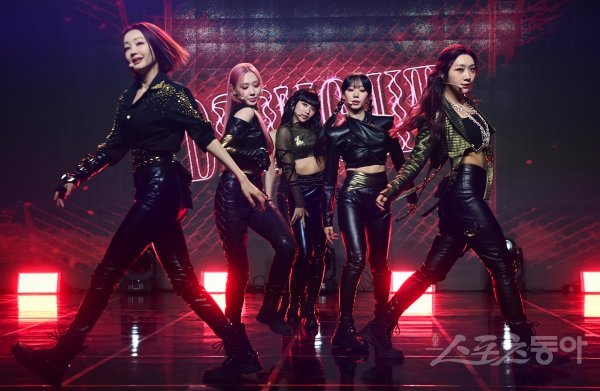 그룹 시크릿넘버가 8일 서울 강남구 청담동 일지아트홀에서 열린 네 번째 싱글 앨범 ‘DOOMCHITA‘ 발매 기념 미디어 쇼케이스에서 타이틀곡 ’둠치타‘ 무대를 펼치고 있다.