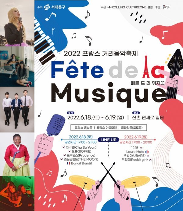 ‘2022 프랑스 거리음악축제(Fête de la Musique)’가 18일(토)부터 19일(일)까지 양일간 신촌 연세로에서 펼쳐지는 가운데 차수연, 조문근밴드, 프루던스 등의 뮤지션들이 총 출동한다.