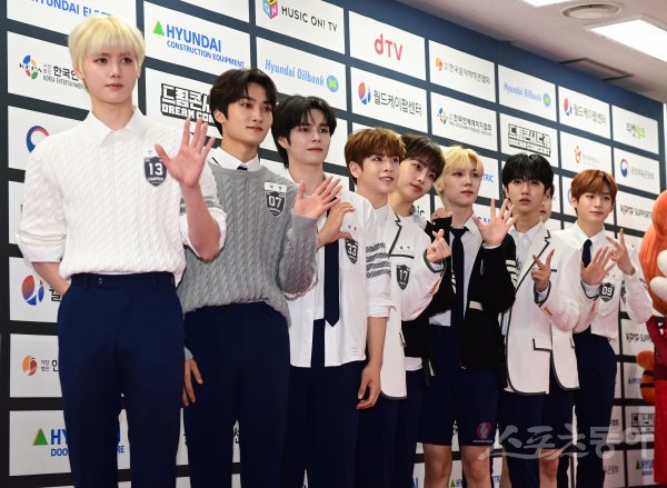 그룹 크래비티가 18일 서울 잠실올림픽주경기장에서 열린 ‘28회 드림콘서트’ 포토월에서 포즈를 취하고 있다.
