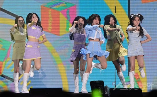 그룹 위클리가 18일 서울 잠실올림픽주경기장에서 열린 ‘28회 드림콘서트’에서 공연을 펼치고 있다.