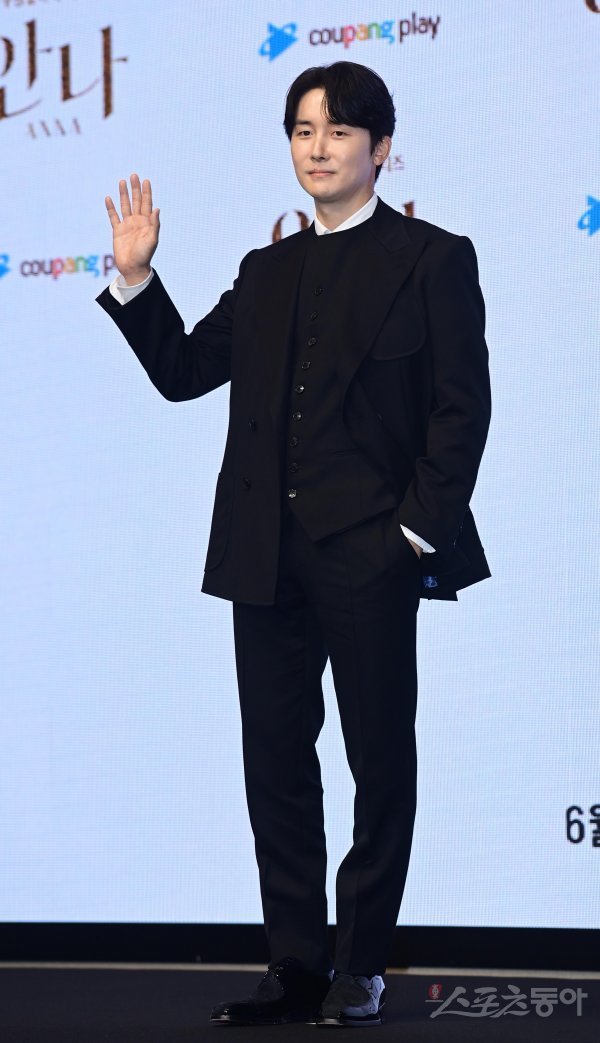 배우 김준한이 21일 서울 영등포구 여의도동 콘래드서울에서 열린 쿠팡플레이 ‘안나’ 제작발표회에서 포즈를 취하고 있다.