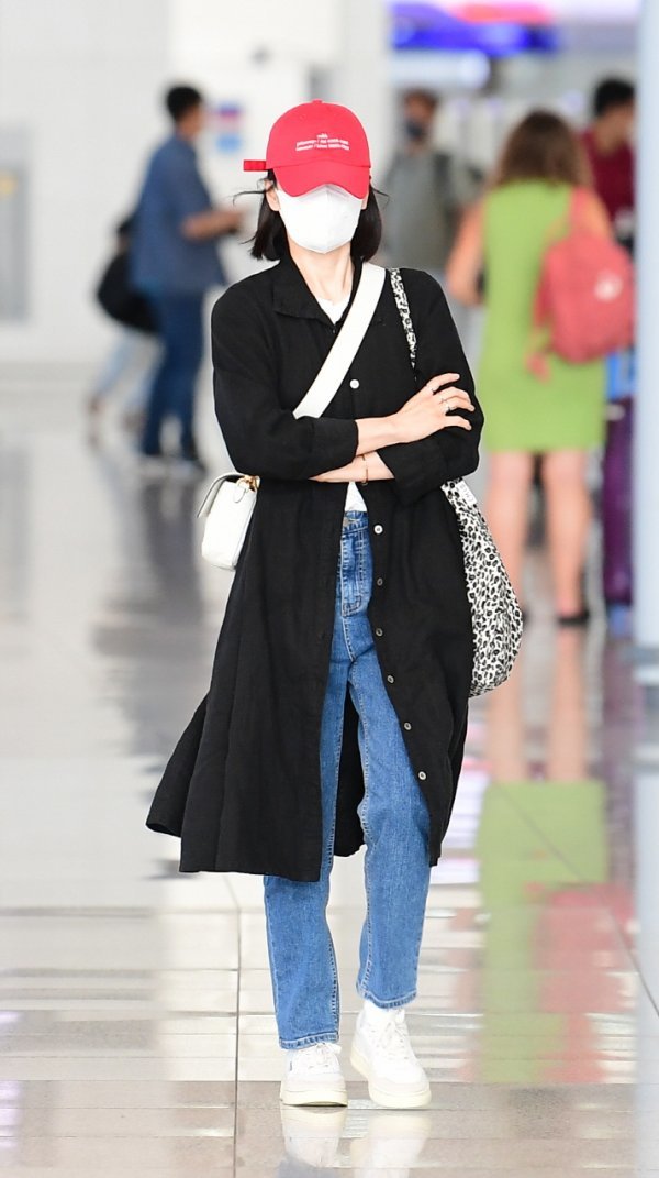 한 글로벌 패션 하우스 브랜드의 앰버서더인 송혜교는 1일(이하 한국시간) 인천국제공항을 통해 프랑스 파리로 출국했다. 이날 그는 아이코닉한 바게트 백을 매치해 편안하면서도 스타일리시한 공항 패션을 완성했다.