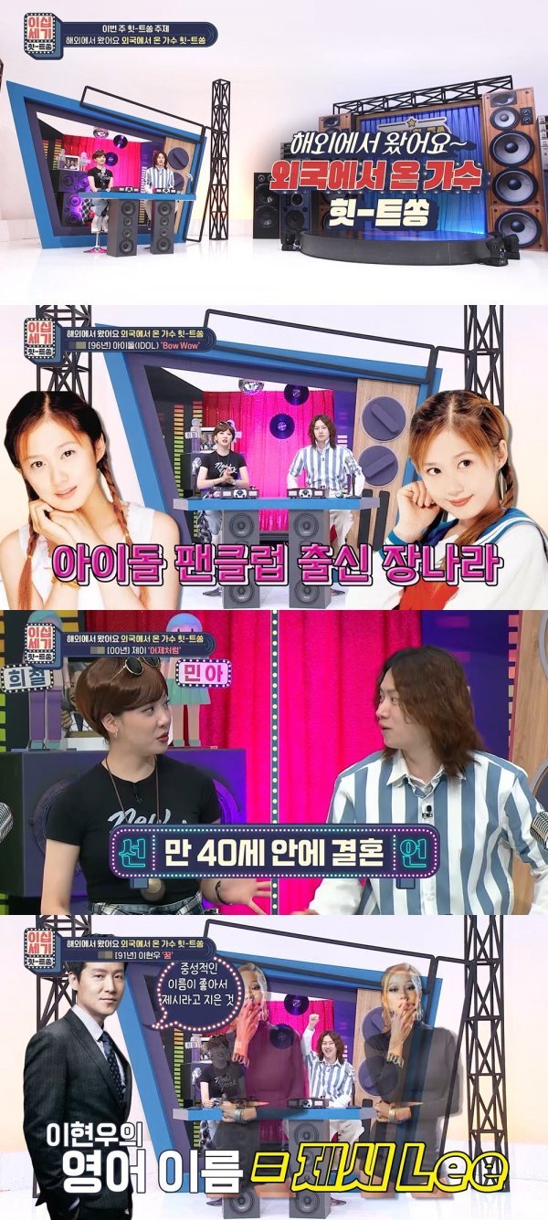 이날 '힛트쏭'은 그룹 내 외국인 멤버가 존재하는 20세기 가수들을 소개한다. 먼저 2인조 아이돌(최혁준, 이세성)은 하이틴 열풍의 시초라고 할 수 있는 H.O.T. 토니안의 우상으로 언급된다. 장나라는 한때 아이돌 팬클럽 활동을 하다 늦은 시간에 귀가를 해 아버지에게 혼난 적도 있다고.