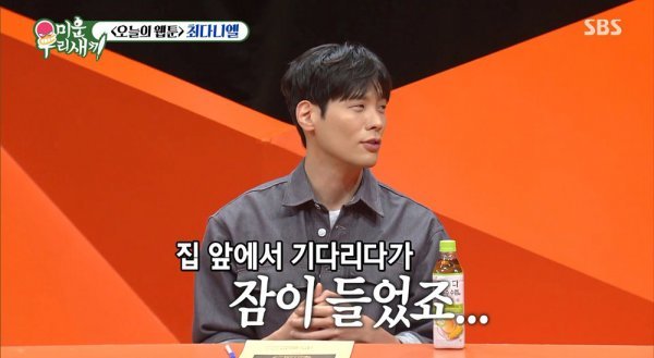 최다니엘은 “어릴 때는 잘 싸우니까 그 때도 집 앞에 찾아갔는데 여자친구가 아예 나오지도 않더라. 언젠간 나오겠지 하고 집 앞에서 기다리다가 너무 춥고 피곤해서 잠이 들었다. 복도식 아파트였는데 엘리베이터 앞에서 잠들었다”고 회상했다.