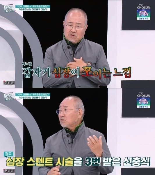 배우 신충식이 심장 스탠트 시술을 하게 된 안타까운 사연을 전했다.