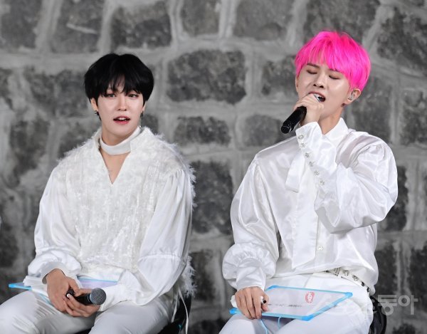 그룹 킹덤 아이반(오른쪽)이 22일 고양 덕양구 대덕동 한 스튜디오에서 열린 주튀르키예한국문화원 개원 11주년 킹덤 케이팝 온라인 콘서트에서 고음 장인으로 꼽혀 노래를 부르고 있다. 한국과 튀르키예 수교 65주년을 맞는 해인 올해는 형제의 나라라고 부를 만큼 친밀한 관계를 맺고 있다. 양국 문화에 대해 깊이 이해하고 가까워지는 기회로 주튀르키예한국문화원 유튜브를 통해 온라인 콘서트가 열렸다.