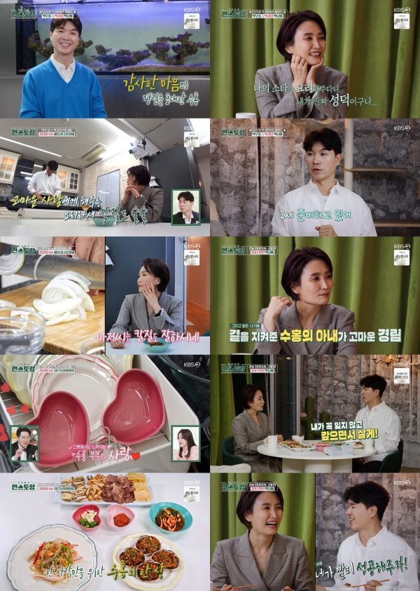 박수홍은 박경림을 위해 밥도둑 개조개 볶음을 만들었다. 이때 박경림이 맛있는 파김치와 참기름을 들고 나타났다. 이어 박수홍은 박경림과의 추억이 담긴 해물콩나물잡채와 귀한 음식 검은 돌장어 삼합을 만들었다. 작은 것 하나도 박경림의 취향을 배려하는 박수홍의 세심함이 빛났다.