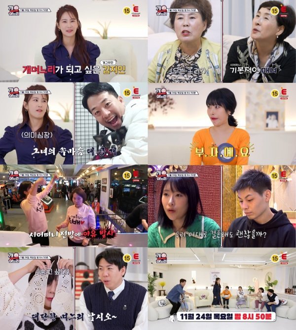 오늘(24일) 티캐스트 E채널 예능 프로그램 ‘개며느리’(연출 박소현, 작가 안용진) 2회 예고편에서는 김지민이 등장했다.