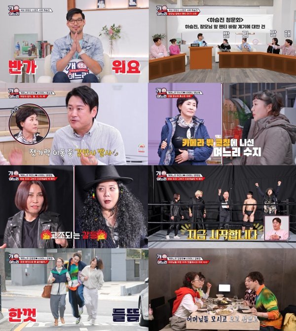 색다른 데이트에 나선 ‘개며느리’도 있었다. 김영희를 기다리던 시어머니와 친정어머니 앞에 뮤지컬 배우 김호영이 나타났다. 그의 등장에 어색했던 사돈의 분위기가 좋아졌다. 하지만 친정어머니는 시어머니만 챙기는 김영희에 대한 서운함을 토로했다. 위기를 감지한 김호영은 노래를 부르며 ‘텐션’을 끌어올렸다. 빈티지 숍에서 쇼핑을 할 때 김영희가 도착했다. 친정어머니보다 시어머니가 김영희를 반겨 웃음을 안겼다.