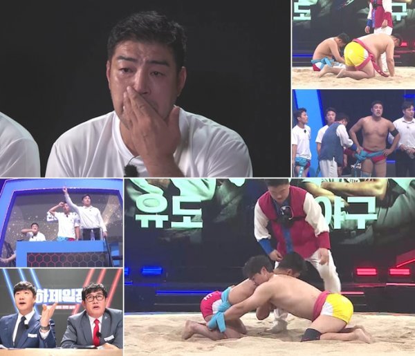 그런가 하면 조준현과 홍성흔은 만담급 선전포고를 주고받아 장내를 웃음을 안길 예정. 조준현은 “공갈포 잡으러 왔다”며 홍성흔을 도발하고, 이에 홍성흔은 “형이 집에 갈 때 택시비는 챙겨줄게~”라고 받아친다. 뒤이어 두 선수는 팽팽한 샅바 싸움 후 거의 동시에 넘어진다. 이때 유도팀은 ‘비디오 판독’을 요청하고, 객석에 있던 선수들은 “거의 동시에 닿았는데?”라며 열띤 토크를 주고받는다. 과연 유도팀과 야구팀의 마지막 대결에서 누가 승리해 ‘제1대 천하제일장사’에 등극할지 귀추가 주목된다.