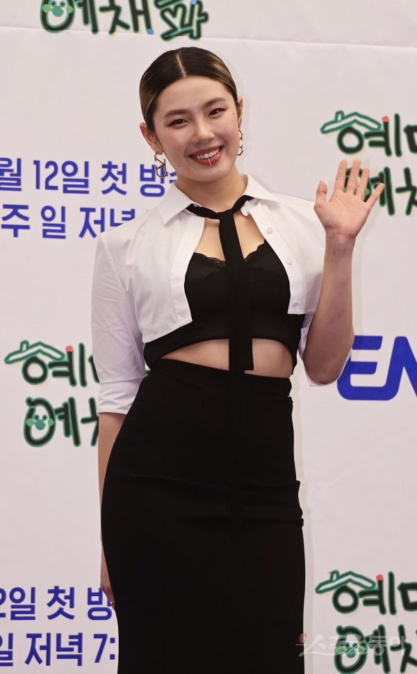 댄서 리정이 9일 서울 마포구 상암동 스탠포드 서울에서 열린 ENA 예능 프로그램 ‘혜미리예채파’ 제작발표회에서 포즈를 취하고 있다.