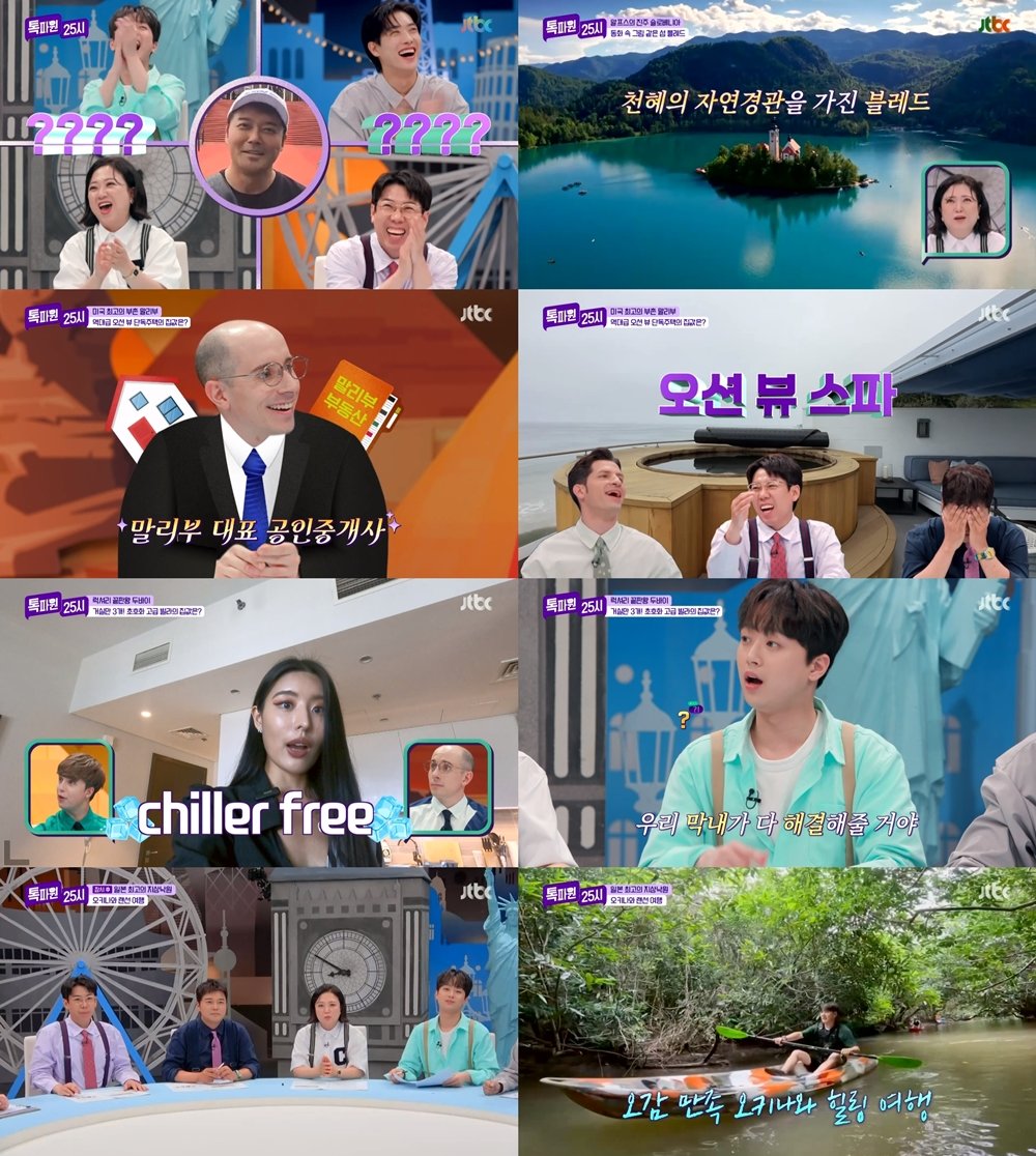 19일 방송된 JTBC ‘톡파원 25시’에서는 미국 말리부와 아랍에미리트 두바이에서 진행된 ‘세계의 집’ 특집 3탄과 슬로베니아 블레드, 일본 오키나와 랜선 여행이 펼쳐져 눈 뗄 수 없는 즐거움을 안겼다.