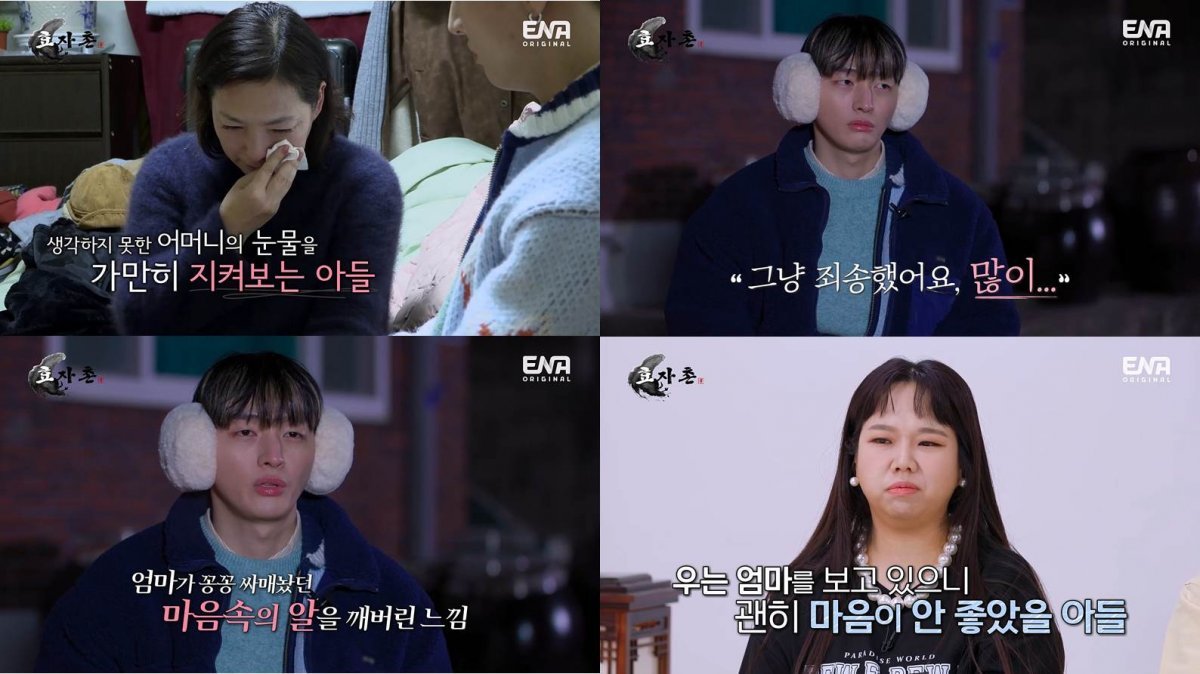 효자촌에 입주한 이후 내내 불안한 감정선을 보였던 윤지성 모자가 눈물로 서로에 대한 진심을 전한 것을 본 MC들은 “오히려 부모님과는 이런 시간이 필요하다”, “내일부턴 사이가 확 달라질 것”이라며 기대했다.