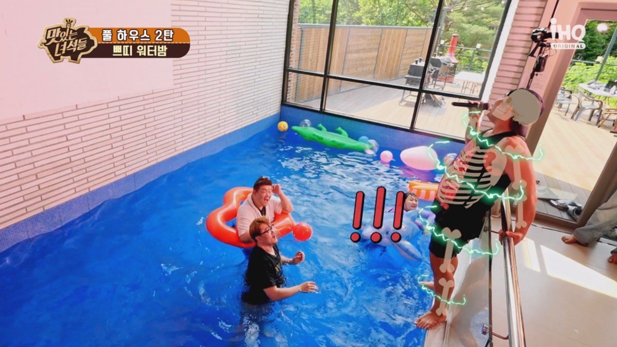 김해준은 갑자기 물속에 뛰어든 유민상의 물폭탄으로 웃음을 안겼고, 데프콘은 신나는 노래로 본캐가 가수임을 입증시킨다. 뒤를 이어 김해준도 마이크를 잡고 흥 폭발을 이끌었으나 데프콘이 던진 비치볼이 급소에 맞는 돌발 상황이 벌어진다.