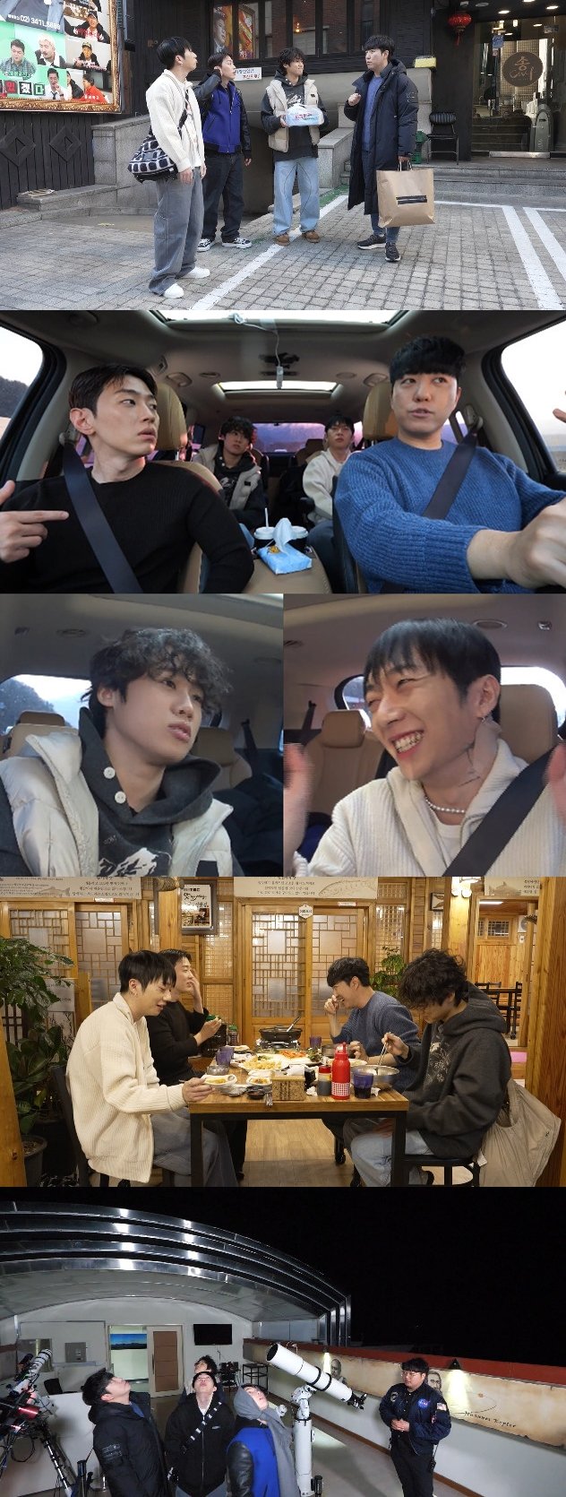배를 든든하게 채운 이들은 해발 1010m에 위치한 천문대로 향한다. 도착하자마자 쏟아지는 밤 하늘의 별을 보며 감탄하던 이들은 곧이어 망원경을 통해 별자리의 매력에 제대로 빠진다는데. 그 가운데 그레이와 우원재, 쿠기는 음악적 영감을 제대로 받는다고 해 이들의 만남이 더욱 기다려진다.