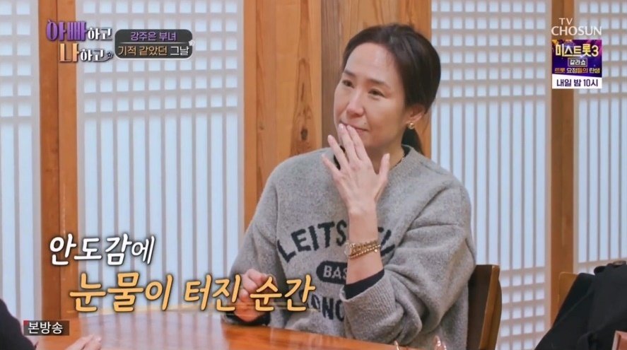 이윽고 캐나다에서 여생을 마무리하고 싶은 마미의 마음을 돌리기 위해, 강주은 부녀가 합심해 고즈넉한 한옥 식당으로 향했다. 강주은의 마미는 "나는 장독대만 보면 마음이 설렌다. 아주 미치는 거다"라며 감탄을 연발했다. 노래가 절로 나올 정도로 만족한 마미에게 강주은은 마미의 수술 당시 심장이 철렁였던 심정을 고백했다. 이에 마미는 "너와 민수가 매일 울며 기도한 걸 안다. 너희의 사랑에 보답하고 싶었다"라며 수술 후 빠르게 건강을 되찾은 이유를 밝혔다. 이어 15첩 반상이 상을 가득 메우자 강주은은 "신혼 때 남편에게 매일 이런 상차림을 해줬다"라며 불만을 토로했다. 그는 "한국의 주부로서 해야 될 역할이라 생각했다. 심지어 '진지 잡수세요'라고 했다"라고 신혼 초를 회상하며 억울함을 호소했다.