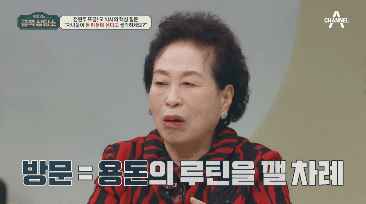 지난 2일 방송된 채널A ‘오은영의 금쪽 상담소’에는 86세의 나이에도 바쁘게 살고 있다는 전원주는 “가족들이 나를 돈으로만 보는 것 같아서 속상하다”라는 충격적인 고민을 고백한다.
