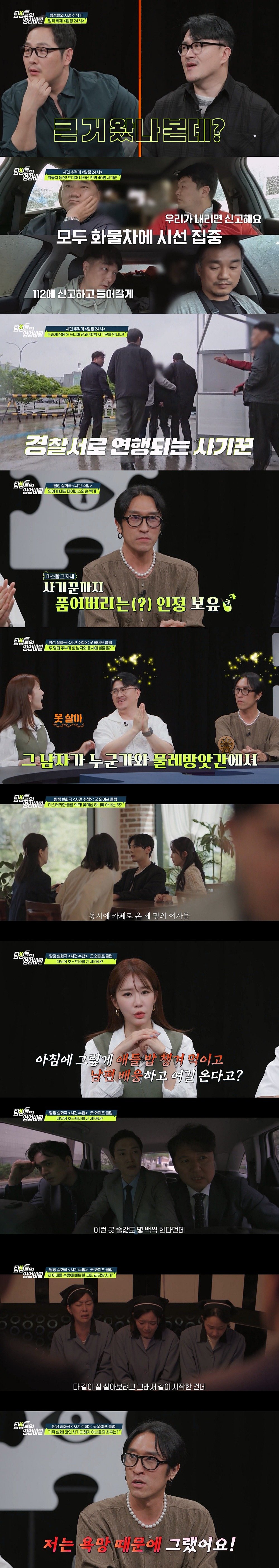 결국 의뢰인 남편들까지 탐정들과 합세해 검은 승합차를 타고 어디론가 향하는 아내들을 미행했다. 아내들의 목적지는 \'호스트바\'여서 경악을 선사했다. 하지만 남편들이 급습한 현장에서 아내들은 서빙과 청소를 하고 있었다. 아내들은 SNS에서 본 \'코인 리딩방\'에 모였다가 무려 5억원 상당의 사기를 당했고, 그 이자 빚이라도 갚기 위해 일하고 있었다. 아내들이 만난 청년은 ‘코인사기’ 피해자이면서 다른 사람을 끌어들이는 ‘중간책’이었다. 코인사기를 당한 경험이 있는 빽가는 "제가 했던 것들이다"라며 영상 속 아내들의 고통에 공감했다.