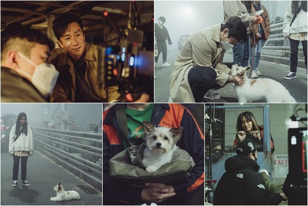 먼저 비하인드 스틸에는 붕괴 직전 공항대교에 갇힌 안보실 행정관 정원 역을 맡은 이선균이 극 중 고군분투를 펼치는 치열한 모습과는 반대로 따뜻한 미소를 띤 채 촬영 장면을 모니터하고 있는 모습이 이목을 집중시킨다. 신스틸러인 강아지 조디(핀아)를 향한 배우들의 다정한 모습 또한 눈길을 끈다. 눈 인사를 하며 조디를 반갑게 맞이하는 이선균부터 얌전히 대기하고 있는 조디를 기특하게 바라보고 있는 경민 역의 김수안, 조디에게 내 집 같은 편안함을 선사해 준 조박 역의 주지훈까지. 촬영장의 마스코트로 많은 사랑을 받은 조디의 활약상은 물론, 훈훈한 촬영 현장 분위기를 엿볼 수 있다.