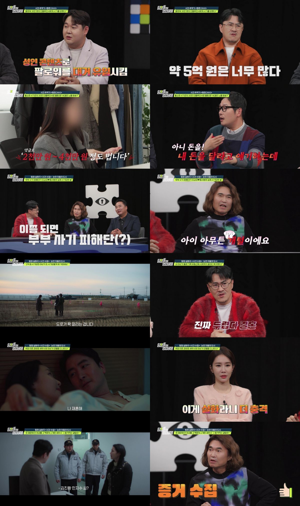 ‘탐정들의 영업비밀’의 코너 ‘탐정24시’에서 도깨비 탐정단이 ‘유명 인플루언서 5억 사기사건’에 착수했다. 또, ‘사건수첩-눈먼 자들의 도시’에서는 홍서범이 아내 조갑경과 당한 사기 일화를 풀어내 안타까움을 자아냈다.