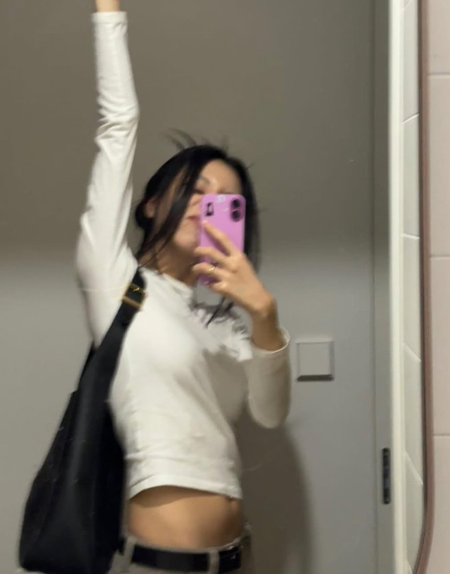 채영은 12일 자신의 인스타그램을 통해 다양한 일상 사진을 공유했다. 사진 속 그는 몸에 밀착되는 기본 흰색 상의에 연갈색 팬츠 그리고 블랙백으로 차분한 일상 룩을 완성했다.