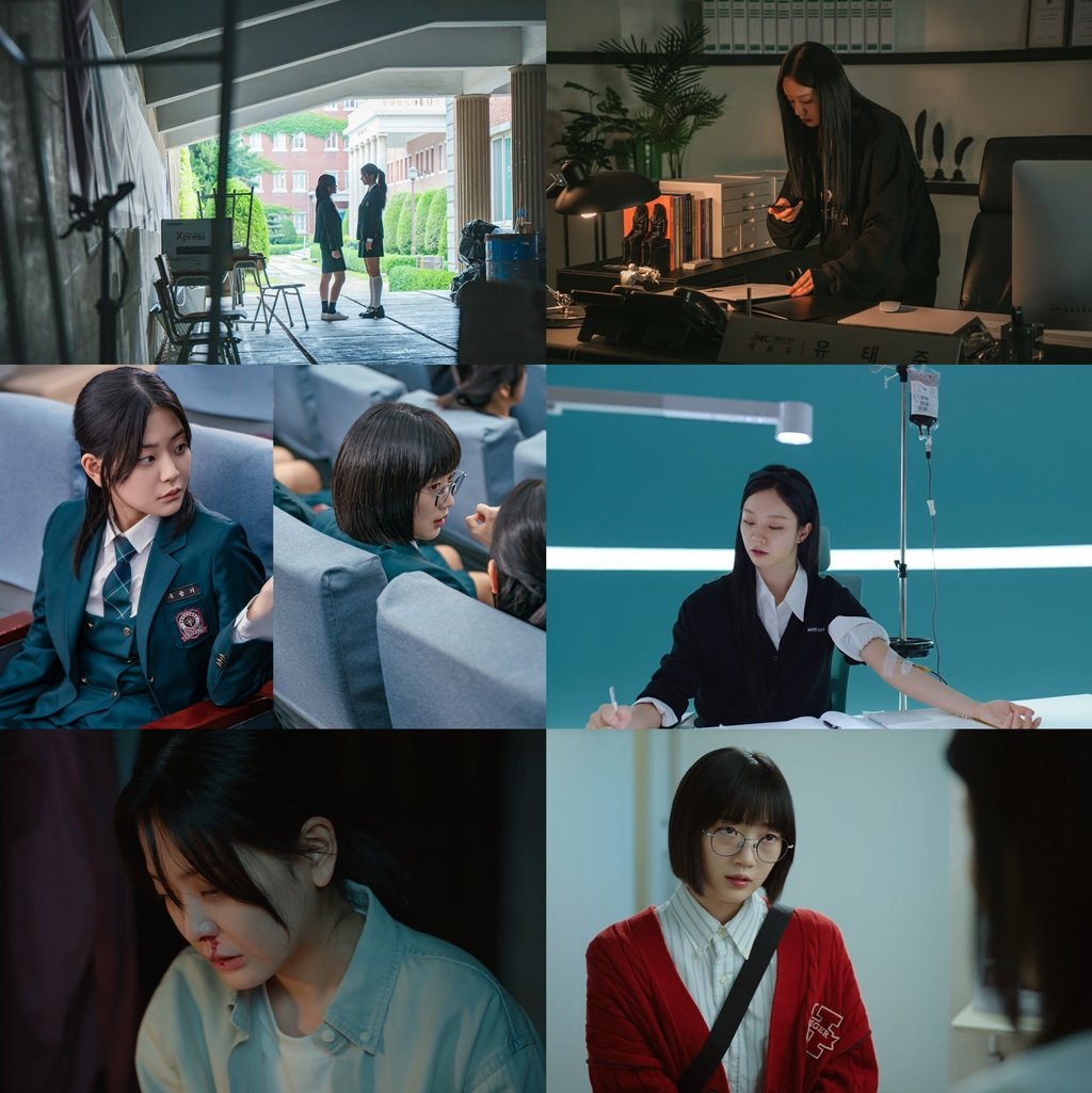 그런가 하면 이번 회차에서는 중간고사를 앞둔 채화여고 3학년 1등 후보 제이, 슬기, 경이의 공부법도 공개된다. 검붉은 피를 수혈받으며 공부하는 제이, 밤늦게까지 공부하다가 코피를 흘리는 슬기, 병원에서 의사 선생님에게 상담을 받는 경이까지. 저마다 다른 방법으로 중간고사를 준비하는 세 사람의 치열한 중간고사 준비기가 기대되고 기다려진다.