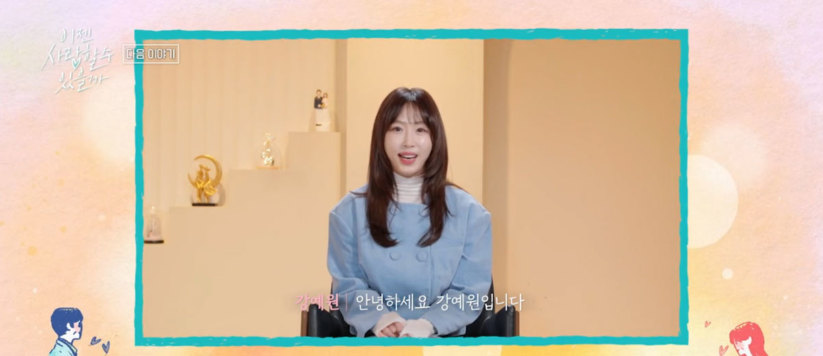 24일 방송된 tvN STORY ‘이젠 사랑할 수 있을까’ 예고편에 강예원이 등장해 “안녕하세요. 강예원입니다. 반갑습니다”라며 인사를 전했다,