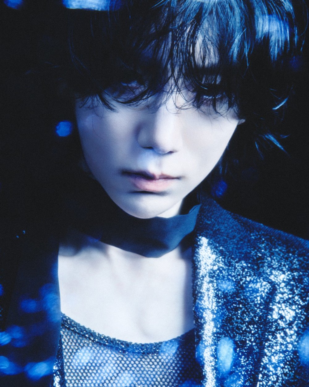 공개된 사진 속 장현승은 시스루 톱과 시퀸 소재 블레이저를 매치해 강렬하면서도 몽환적인 비주얼을 선보였다. 푸른빛 조명 아래 깊은 눈빛과 섹시한 스타일링이 어우러져 신비로운 아우라를 더했다.